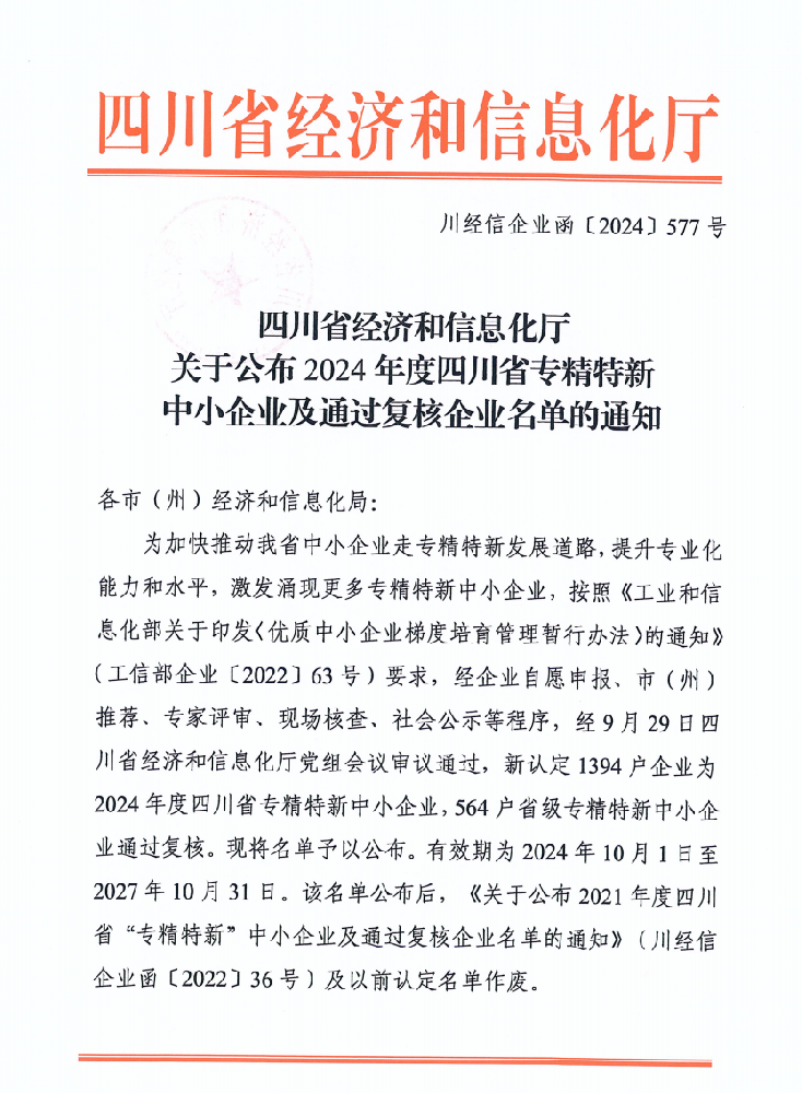 近日,四川省經濟和信息化廳公布了2024年專精特新中小企業(yè)名單,四川艾能捷科技有限公司(Sichuan Energy Technology Co., Ltd.)憑借其卓越的技術實力和專業(yè)化發(fā)展優(yōu)勢,榮獲四川省“專精特新”中小企業(yè)稱號。這一成就體現了艾能捷(ENERGY)公司在技術創(chuàng)新和專業(yè)服務方面的卓越表現,也符合“... -